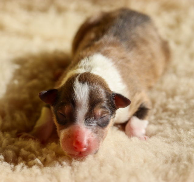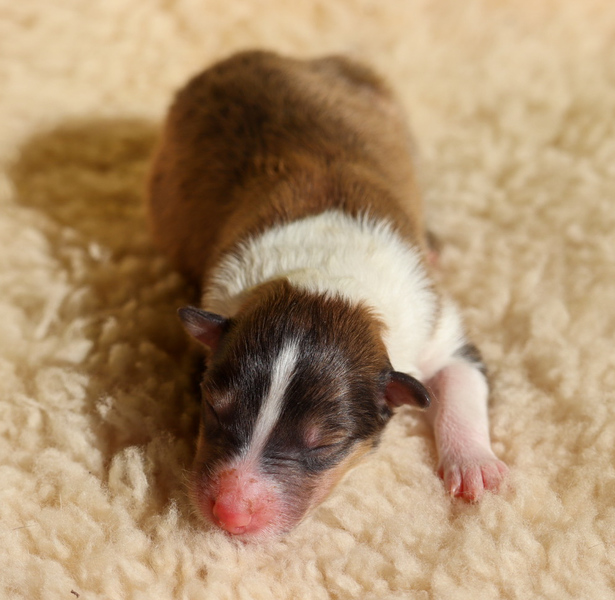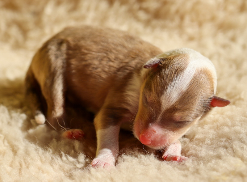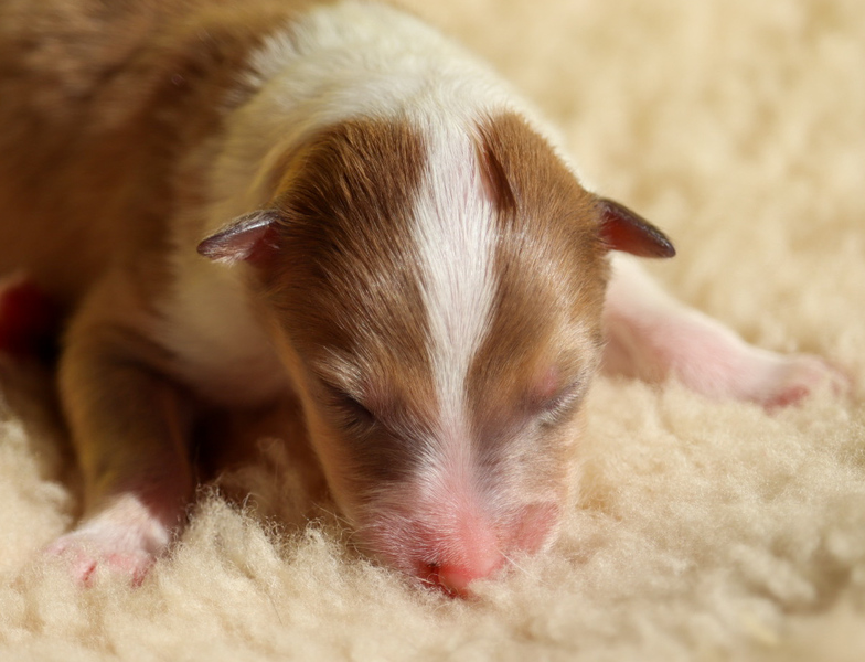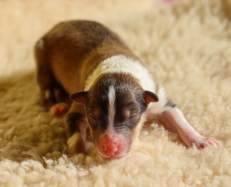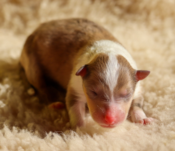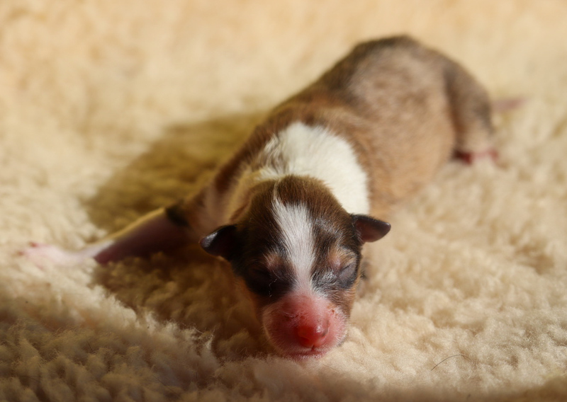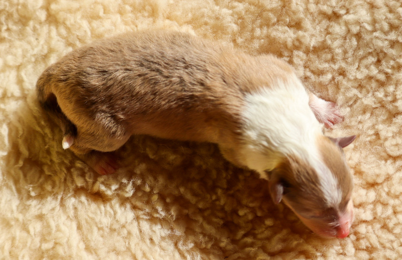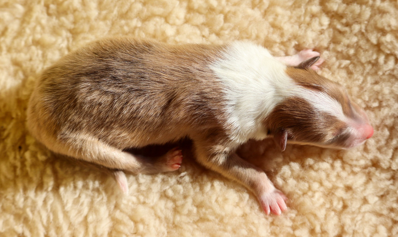 Geboren um 0:48 Uhr / Rüde / Gewicht 256g / dark sable - white