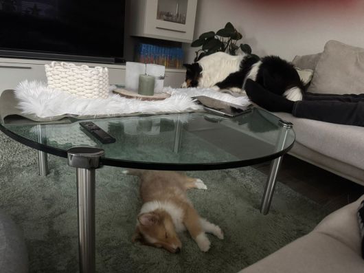 Guten Morgen, auch von uns ein gutes neues Jahr an alle :-) Auch Jenna hat das Silvester Feuerwerk im Wintergarten verpennt ;-) Wir hatten Freunde zu Besuch mit auch 2 Hunden und was soll ich sagen..... unsere beiden Sunhills haben es am Besten gemacht ;-) So schön, wenn man so entspannte Hunde hat :-)