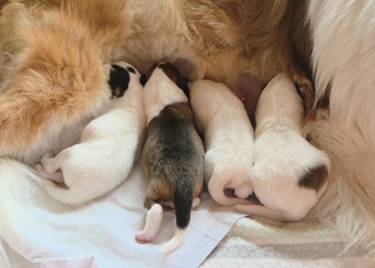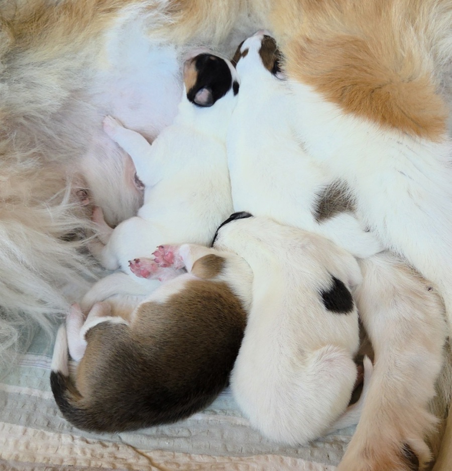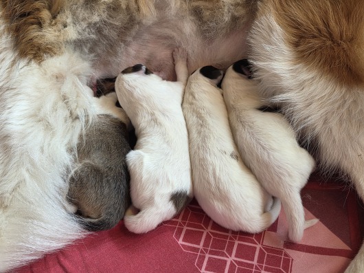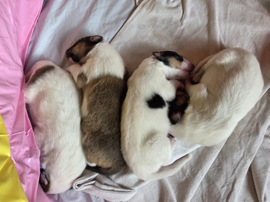 Ein ganz liebes Hallo hier in unserem Welpentagebuch, hier werden wir Euch ein wenig an unserer Entwicklung teilhaben lassen und Euch immer etwas davon erzählen, was wir hier die nächsten Wochen so erleben ;-) Es wird auf jeden Fall lustig, spannend und aufregend haben unsere Ziehfrauchen gesagt :-) Momentan ist aber natürlich noch nicht viel los, wir müssen ja schließlich erstmal ein wenig wachsen und größer werden, bevor wir tolle Abenteuer erleben können! Unser Tag besteht bisher eigentlich nur aus essen ( wir müssen ja schließlich schön zunehmen ) und schlafen :-) Das wird aber natürlich nicht die ganze Zeit so bleiben, also bleibt auf jeden Fall dran, wenn ihr nichts verpassen wollt ;-) Ganz liebe Grüße und bis ganz bald! Eure Krümelbande und Feli ( die übrigens die beste Mami der Welt ist !!! ) P.S. Hier gibt es noch ein kleines Video von uns https://www.youtube.com/shorts/bXH837oJimg.